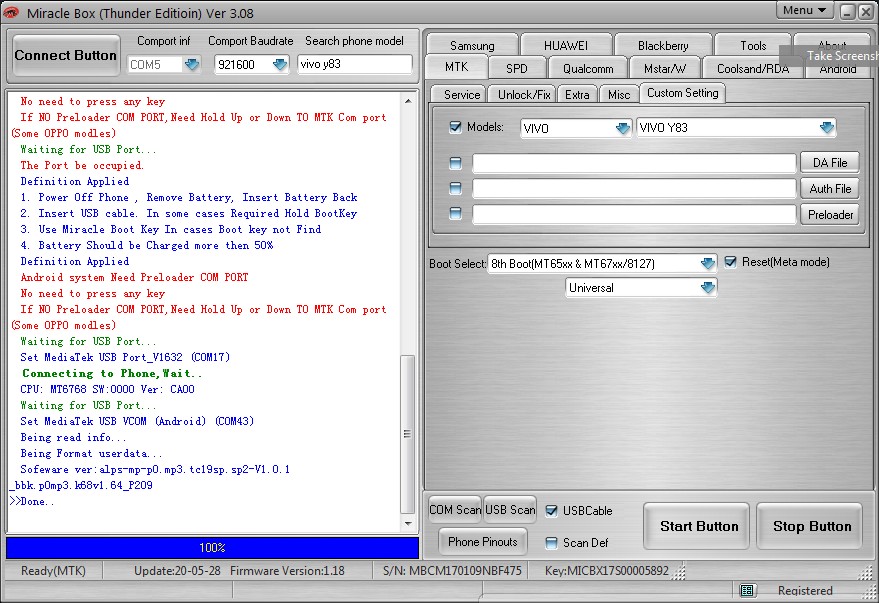 Vivo y19(1915) factory reset( meta mode) done with miracle box